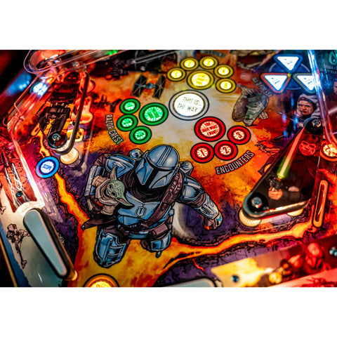 Introducing the exciting pinball adventure inspired by the popular Star Wars series, The Mandalorian, now available at Game Room Shop - your trusted authorized seller of Stern Pinball products. Join the lone gunfighter and protect Grogu as you battle enemies and forces across the galaxy in this action-packed quest.