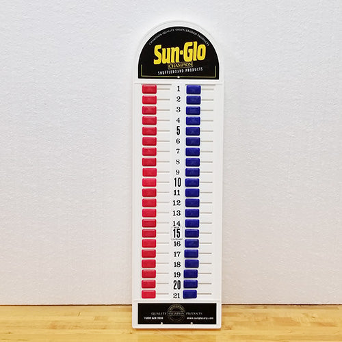 The plastic scoreboards help you keep track of your points. Available in red and blue or red and green.