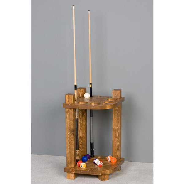 The pine log, klondike log or barnwood cue racks will go with any lodge, rustic or western pool table. In the pine log, klondike and barnwood there are corner cue racks, standard floor cue racks, framed wall, and 2 piece wall cue racks available. We also carry matching floor and corner cue racks in the Red Cedar and Ironwood style. All of our corner and standard floor cue racks have four drink holders with cork insert, ball storage, chalk storage and storage for up to six cue sticks. If any of these cue racks don't fit your needs, a custom cue rack can be made just for you.