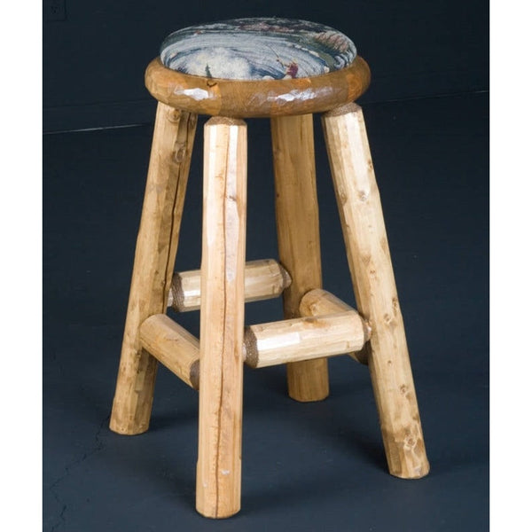 The Log Upholstered Pub stools go great with our log bar, log pub table, or in the rustic kitchen area. Every log pub stool is made of three-inch diameter logs and joined together with a mortise and tenon joint which is glued together for maximum strength.