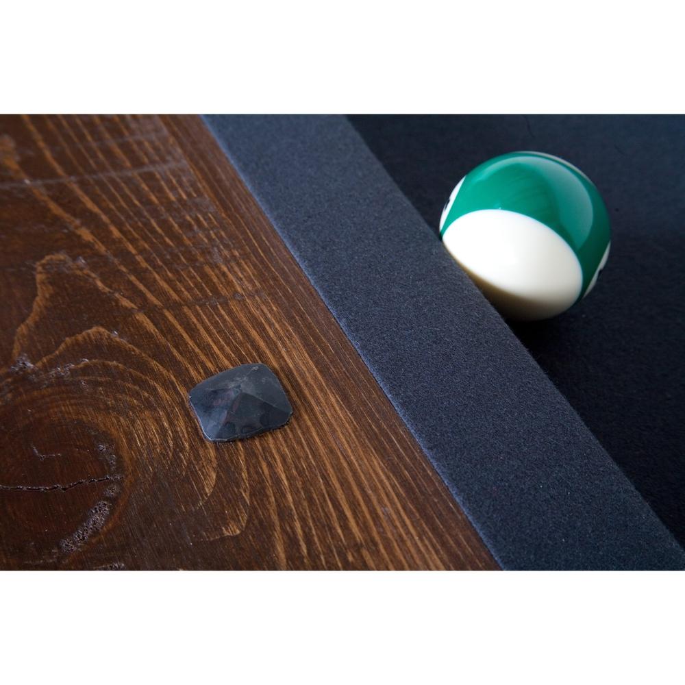 Our signature pine tree spotting points are cut from black walnut. The spotting points are machined by a computerized router into the top rail to give each log pool table a rustic look.